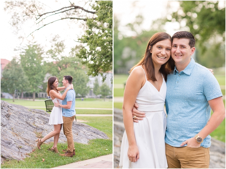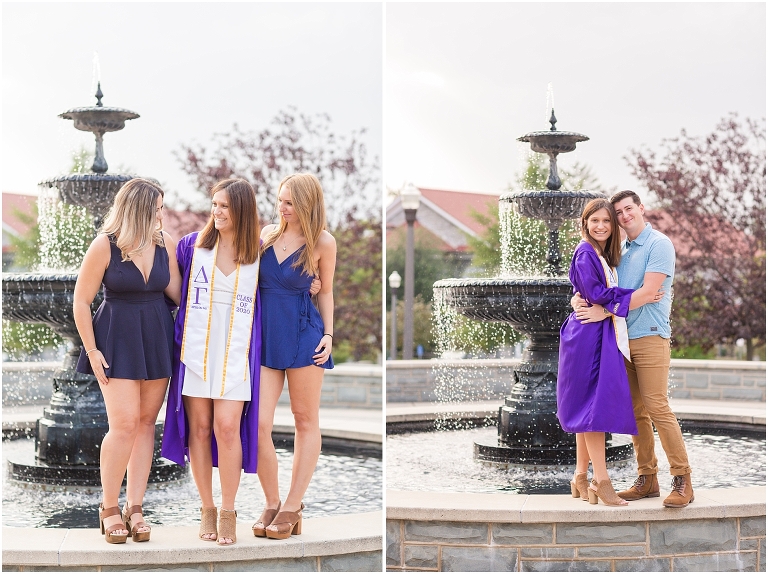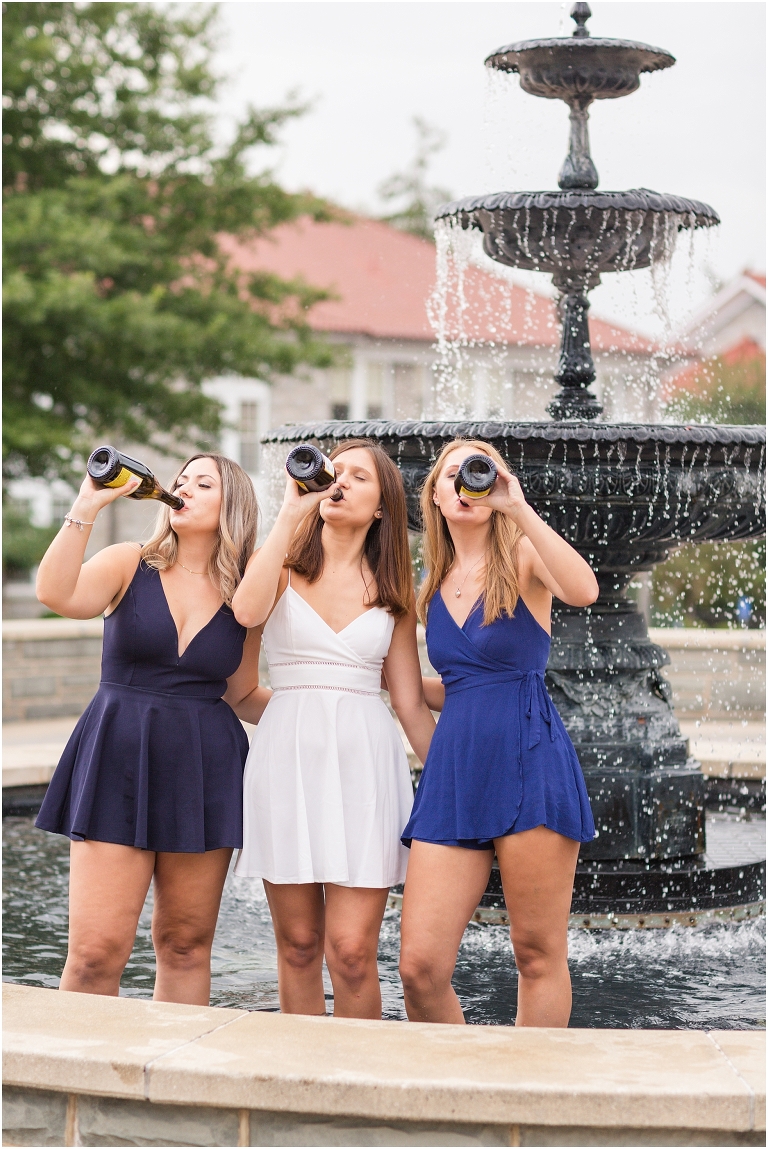 Katie told me she was nervous, but she was fantastic in front of the camera. We laughed our way through the session and got some of my favorite grad photos to date. Our group started at the James Madison statue, made our way down the quad to get some Wilson photos, snapped a few adorable couples pictures at the kissing rock, and ended with a bang (of champagne) and the fountain! We got the best surprise when two dogs jumped into the fountain with them. It was the best way to end the session!
